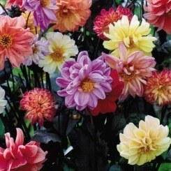 Низкорослые георгины высотой до 45 см. Стебель упругий, листья темно-коричневые. Соцветия - яркие, полумахровые, диаметром 6-8 см. Георгины отлично подойдут для создания яркого бордюра, смешанной клумбы,а также для посадки в вазоны и балконные ящики.