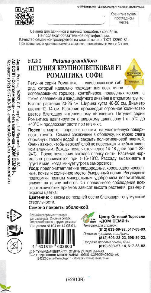 Петуния серии Романтика — универсальный гибрид, который идеально подходит для всех типов использования: горшков, контейнеров, подвесных корзин, а также озеленения и ландшафтного дизайна в открытом грунте. Высота растения 20-25 см. Ширина куста 40-50 см. Диаметр цветка 12-14 см.