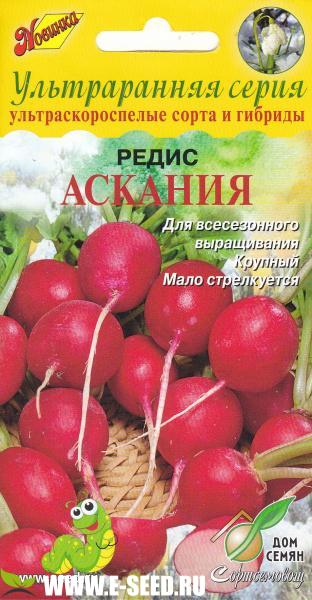 Очень ранний (22-24 дня от всходов до образования корнеплодов) сорт для всесезонного выращивания в открытом и защищенном грунте. Формирует крупные (до 21 г), ярко - красные, эллиптической формы корнеплоды с белой, сочной, мякотью. Вкус слабоострый. Ценность сорта: слабая чувствительность к длине светового дня, урожайность, устойчивость к стрелкованию. Долго сохраняет товарный вид. Подходит для выращивания на пучковую продукцию.